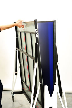 Table top colour / material / thickness: Blue or Green / Aluminium plastic / 4 or 6 mm